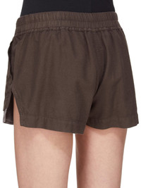 DRKSHDW FW25 CONCORDIANS FOG BOXERS IN DRKDUST LIGHT FLANNEL THESE FOG BOXERS ARE CUT HIGH ON THE THIGH. THEY HAVE AN ELASTICIZED WAISTBAND WITH DRAWSTRING, SIDE WELT POCKETS AND SIDE SLITS. THIS LIGHTWEIGHT COTTON FLANNEL FABRIC IS GARMENT DYED WITH A SOFT AND BRUSHED HANDFEEL THIS FABRIC IS MADE USING GOTS CERTIFIED ORGANIC COTTON WHICH MEANS THE NATURAL FIBER IS GROWN WITHOUT HARMFUL CHEMICALS, LEAVING OUR SOIL, AIR AND WATER CLEANER FROM CONTAMINATES COLOR: DRKDUST MATERIAL: 100% COTTON MODEL IS 181CM TALL MODEL WEARS SIZE S