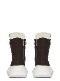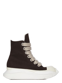 DRKSHDW FW25 CONCORDIANS JUMBOLACE ABSTRACT SNEAKS IN DRKDUST/MILK/MILK 13OZ OVERDYED DENIM THESE JUMBOLACE ABSTRACT SNEAKS ARE ABOVE ANKLE HEIGHT AND FEATURE SEVEN LARGE EYELETS AND JUMBO LACES, TOE CAPS AND A VOLUMINOUS RUBBER ABSTRACT SOLE. THIS MEDIUMWEIGHT 13OZ DENIM IS OVERDYED AND HAS A SOFT AND WASHED HANDFEEL THIS FABRIC IS MADE USING GOTS CERTIFIED ORGANIC COTTON WHICH MEANS THE NATURAL FIBER IS GROWN WITHOUT HARMFUL CHEMICALS, LEAVING OUR SOIL, AIR AND WATER CLEANER FROM CONTAMINATES COLOR: DRKDUST/MILK/MILK MATERIAL: UPPER 100% COTTON TOE 70% POLYURETHANE + 30% VISCOSE LINING 100% COTTON PLATFORM AT HEEL 7CM / AT TOE 5CM