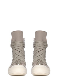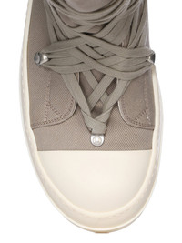 DRKSHDW FW25 CONCORDIANS MEGALACE SNEAKS IN DIRTY PEARL/MILK/MILK 13OZ OVERDYED DENIM THESE MEGALACE SNEAKS ARE ABOVE-ANKLE HEIGHT AND FEATURE SEVEN EYELETS, MEGALACE DETAIL, A ZIPPER ON THE INSIDE ANKLE FOR EASY FASTENING, TOE CAPS AND SHARK-TOOTHED BUMPER SOLES THIS MEDIUMWEIGHT 13OZ DENIM IS OVERDYED AND HAS A SOFT AND WASHED HANDFEEL THIS FABRIC IS MADE USING GOTS CERTIFIED ORGANIC COTTON WHICH MEANS THE NATURAL FIBER IS GROWN WITHOUT HARMFUL CHEMICALS, LEAVING OUR SOIL, AIR AND WATER CLEANER FROM CONTAMINATES COLOR: DIRTY PEARL/MILK/MILK MATERIAL: UPPER 100% COTTON TOE 70% POLYURETHANE + 30% VISCOSE LINING 100% COTTON SOLE HEIGHT 3.5CM