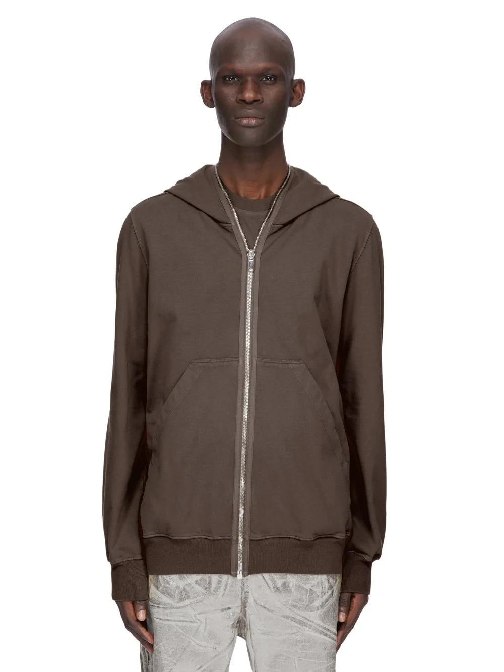 DRKSHDW FW25 CONCORDIANS JUMBO GIMP HOODIE IN DRKDUST COMPACT HEAVY JERSEY THIS JUMBO GIMP HOODIE IS SLIGHTLY BELOW HIP LENGTH WITH LONG SLEEVES AND LARGE FIT. IT HAS A FRONT ZIPPER CLOSURE WITH EXPOSED ZIPPER TAPE THAT RUNS FROM THE HEM ALL THE WAY UP THROUGH THE HOOD, ALLOWING IT TO BE ZIPPERED COMPLETELY CLOSED OVER THE FACE. IT HAS TWO SIDE FRONT POCKETS, RIBBED CUFFS AND HEM AND A SINGLE SEAM RUNNING DOWN THE CENTRE BACK SPINE. THIS HEAVYWEIGHT COTTON SWEATSHIRT JERSEY IS MADE WITH A SLUB YARN AND HAS A SOFT AND WASHED HANDFEEL. THIS JERSEY IS GARMENT DYED THIS FABRIC IS MADE USING GOTS CERTIFIED ORGANIC COTTON WHICH MEANS THE NATURAL FIBER IS GROWN WITHOUT HARMFUL CHEMICALS, LEAVING OUR SOIL, AIR AND WATER CLEANER FROM CONTAMINATES COLOR: DRKDUST MATERIAL: 100% COTTON MODEL IS 189CM TALL MODEL WEARS SIZE S