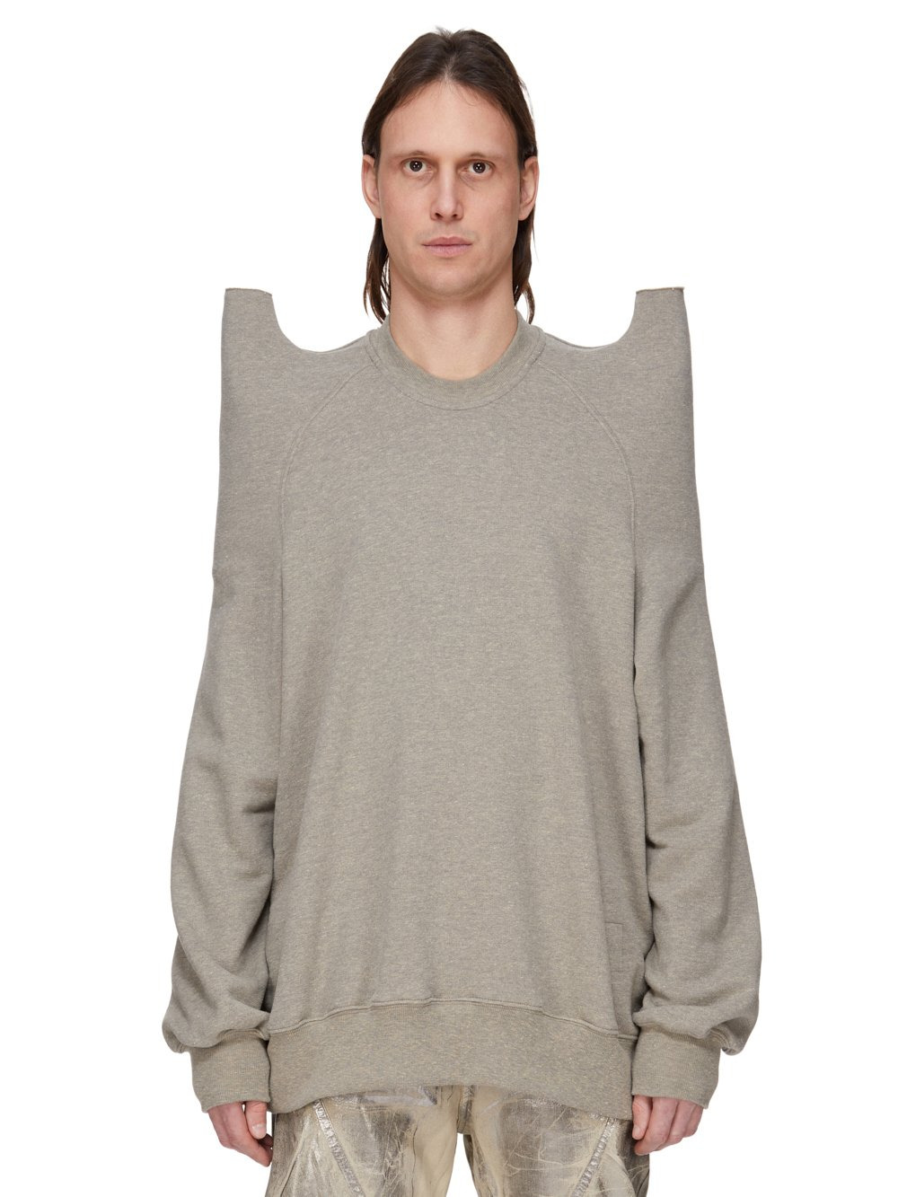 DRKSHDW FW25 CONCORDIANS TECSWEAT IN MELANGE GREY FELPA JERSEY THIS TECSWEAT IS HIP LENGTH WITH LONG SLEEVES AND RIBBED CUFFS, NECK AND WAISTBAND. IT FEATURES RAGLAN SLEEVES WITH EXAGGERATED TEC SHOULDERS WHICH RISE INTO RAW CUT POINTS. THIS HEAVYWEIGHT COTTON AND POLYESTER BLEND MELANGE JERSEY HAS A SOFT HANDFEEL THIS FABRIC IS MADE USING GOTS CERTIFIED ORGANIC COTTON WHICH MEANS THE NATURAL FIBER IS GROWN WITHOUT HARMFUL CHEMICALS, LEAVING OUR SOIL, AIR AND WATER CLEANER FROM CONTAMINATES COLOR: MELANGE GREY MATERIAL: 84% COTTON + 16% POLYESTER KNIT RIB COLLAR, WRIST BAND AND BOTTOM 57% COTTON + 38% POLYESTER + 5% ELASTANE MODEL IS 189CM TALL MODEL WEARS SIZE S