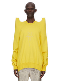 DRKSHDW FW25 CONCORDIANS TECSWEAT IN LEMON/PEARL FURKA HEAVY SWEATSHIRT THIS TECSWEAT IS HIP LENGTH WITH LONG SLEEVES AND RIBBED CUFFS, NECK AND WAISTBAND. IT FEATURES RAGLAN SLEEVES WITH EXAGGERATED TEC SHOULDERS WHICH RISE INTO RAW CUT POINTS. THIS HEAVYWEIGHT COTTON SWEATSHIRT JERSEY HAS A SOFT AND WASHED HANDFEEL. THIS JERSEY IS GARMENT DYED THIS FABRIC IS MADE USING GOTS CERTIFIED ORGANIC COTTON WHICH MEANS THE NATURAL FIBER IS GROWN WITHOUT HARMFUL CHEMICALS, LEAVING OUR SOIL, AIR AND WATER CLEANER FROM CONTAMINATES COLOR: LEMON/PEARL MATERIAL: 100% COTTON MODEL IS 189CM TALL MODEL WEARS SIZE S