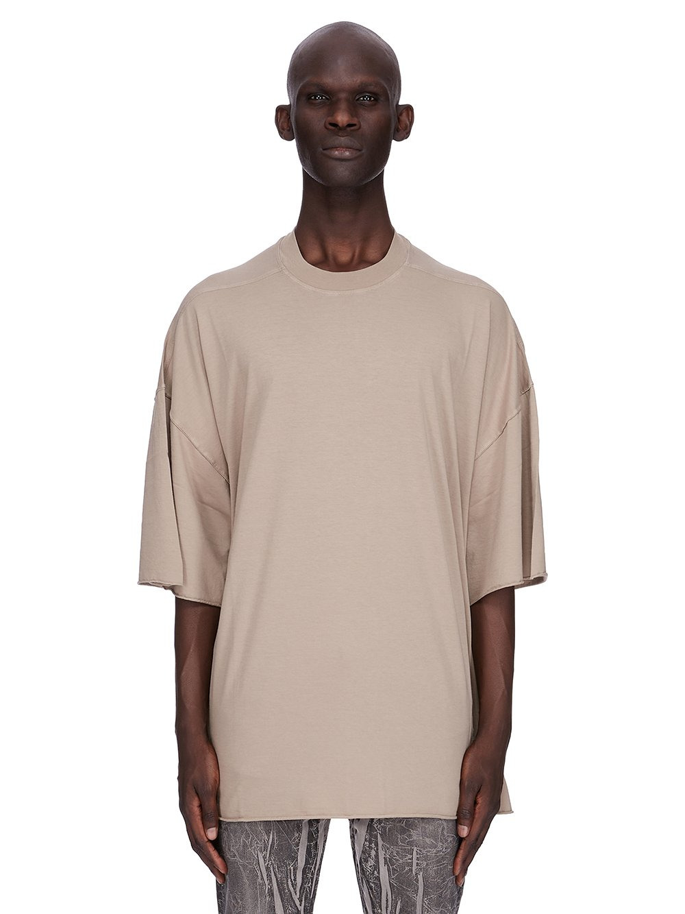 DRKSHDW FW25 CONCORDIANS TOMMY T IN DIRTY PEARL MEDIUM WEIGHT COTTON JERSEY THIS TOMMY T IS BELOW HIP LENGTH WITH A JUMBO OVERSIZED FIT. IT HAS WIDE, SHORT SLEEVES WITH A DROPPED ARMHOLE AND A RIBBED CREWNECK. IT FEATURES SIGNATURE FRONT LEVEL SHOULDER SEAMS AND A CENTRE BACK SEAM. THIS MEDIUMWEIGHT COTTON JERSEY HAS A COMPACT AND DRY HANDFEEL. THIS JERSEY IS GARMENT DYED THIS FABRIC IS MADE USING GOTS CERTIFIED ORGANIC COTTON WHICH MEANS THE NATURAL FIBER IS GROWN WITHOUT HARMFUL CHEMICALS, LEAVING OUR SOIL, AIR AND WATER CLEANER FROM CONTAMINATES COLOR: DIRTY PEARL MATERIAL: 100% COTTON MODEL IS 189CM TALL ITEM IS AVAILABLE IN ONE SIZE