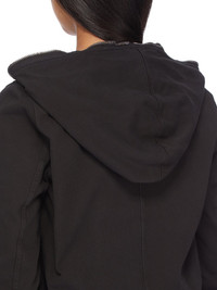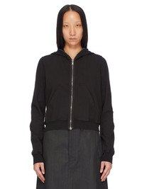 DRKSHDW FW25 CONCORDIANS SMALL GIMP HOODIE IN BLACK COMPACT HEAVY JERSEY THIS SMALL GIMP HOODIE IS ABOVE HIP LENGTH WITH LONG SLEEVES. IT HAS A FRONT ZIPPER CLOSURE WITH EXPOSED ZIPPER TAPE THAT RUNS FROM THE HEM ALL THE WAY UP THROUGH THE HOOD, ALLOWING IT TO BE ZIPPERED COMPLETELY CLOSED OVER THE FACE. IT HAS TWO FRONT PATCH POCKETS, RIBBED CUFFS AND WAISTBAND A SINGLE SEAM RUNNING DOWN THE CENTRE BACK SPINE. THIS HEAVYWEIGHT AND COMPACT COTTON JERSEY HAS A BRUSHED AND SOFT HANDFEEL. THIS JERSEY IS GARMENT DYED THIS FABRIC IS MADE USING GOTS CERTIFIED ORGANIC COTTON WHICH MEANS THE NATURAL FIBER IS GROWN WITHOUT HARMFUL CHEMICALS, LEAVING OUR SOIL, AIR AND WATER CLEANER FROM CONTAMINATES COLOR: BLACK MATERIAL: 100% COTTON MODEL IS 181CM TALL MODEL WEARS SIZE S
