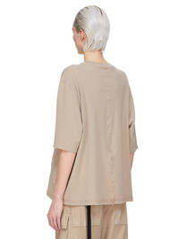 DRKSHDW FW25 CONCORDIANS WALRUS T IN DIRTY PEARL DOUBLE BRUSHED JERSEY THIS WALRUS T IS BELOW WAIST LENGTH WITH A SLIGHTLY BOXY CUT, SHORT SLEEVES AND A RIBBED CREW NECK. IT FEATURES SIDE SEAMS THAT SLOPE TO THE FRONT BODY, CREATING A CONCAVE FRONT HEM. IT HAS SEAMING ON THE UPPER SLEEVE AND SIGNATURE FRONT LEVEL SHOULDER SEAMS AND A CENTRE BACK SEAM. THIS MEDIUMWEIGHT COTTON JERSEY IS BRUSHED ON BOTH SIDES WHICH GIVES THE FABRIC A SOFT AND PEACHY HANDFEEL. THIS JERSEY IS GARMENT DYED THIS FABRIC IS MADE USING GOTS CERTIFIED ORGANIC COTTON WHICH MEANS THE NATURAL FIBER IS GROWN WITHOUT HARMFUL CHEMICALS, LEAVING OUR SOIL, AIR AND WATER CLEANER FROM CONTAMINATES COLOR: DIRTY PEARL MATERIAL: 100% COTTON MODEL IS 181CM TALL ITEM IS AVAILABLE IN ONE SIZE