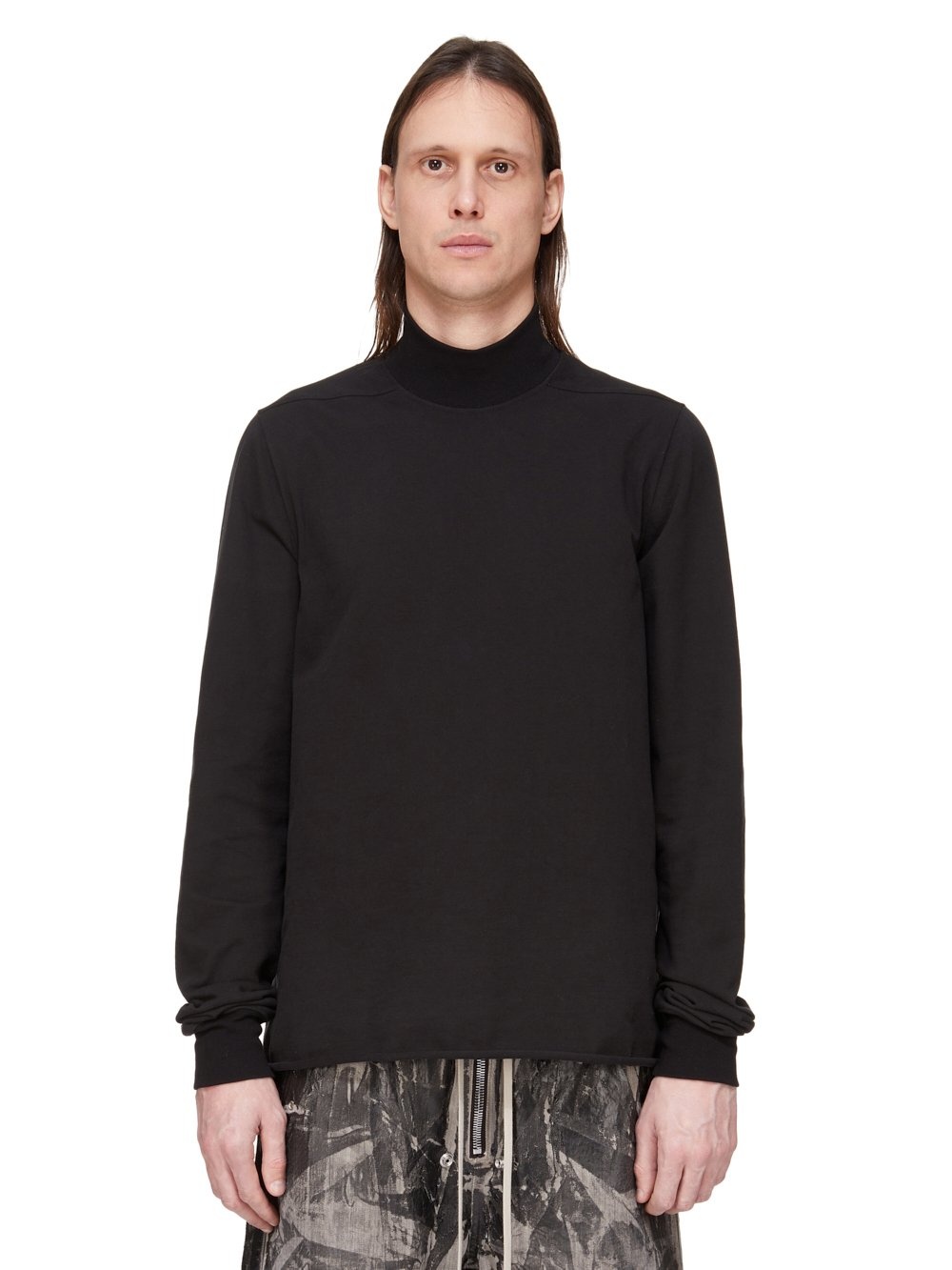 DRKSHDW FW25 CONCORDIANS HEADON DBL SWEATER IN BLACK COMPACT HEAVY JERSEY THIS HEADON DBL SWEATER IS HIP LENGTH WITH LONG SLEEVES. IT HAS A LOW TURTLE NECK COLLAR, LEVEL SHOULDER SEAMS AND CUFFS. IT FEATURES A SECOND NECK OPENING ON THE LOWER BACK AND HAS A SIGNATURE SINGLE SEAM LINE DOWN THE CENTRE BACK. THIS HEAVYWEIGHT AND COMPACT COTTON JERSEY HAS A BRUSHED AND SOFT HANDFEEL. THIS JERSEY IS GARMENT DYED THIS FABRIC IS MADE USING GOTS CERTIFIED ORGANIC COTTON WHICH MEANS THE NATURAL FIBER IS GROWN WITHOUT HARMFUL CHEMICALS, LEAVING OUR SOIL, AIR AND WATER CLEANER FROM CONTAMINATES COLOR: BLACK MATERIAL: 100% COTTON MODEL IS 189CM TALL MODEL WEARS SIZE S