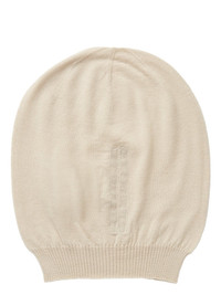 RICK OWENS SS26 TEMPLE MEDIUM HAT IN SAND LIGHTWEIGHT RASATO KNIT THIS MEDIUM HAT IS A BEANIE WITH AN OVAL SHAPE AND A RIBBED KNIT EDGE. WHEN WORN IT HAS A SLIGHTLY LOOSE VOLUME AT TOP THIS LIGHTWEIGHT AND CLASSIC STITCH WOOL KNIT HAS A SOFT HANDFEEL COLOR: SAND MATERIAL:100% NEW WOOL MODEL IS 189CM TALL ITEM IS AVAILABLE IN ONE SIZE
