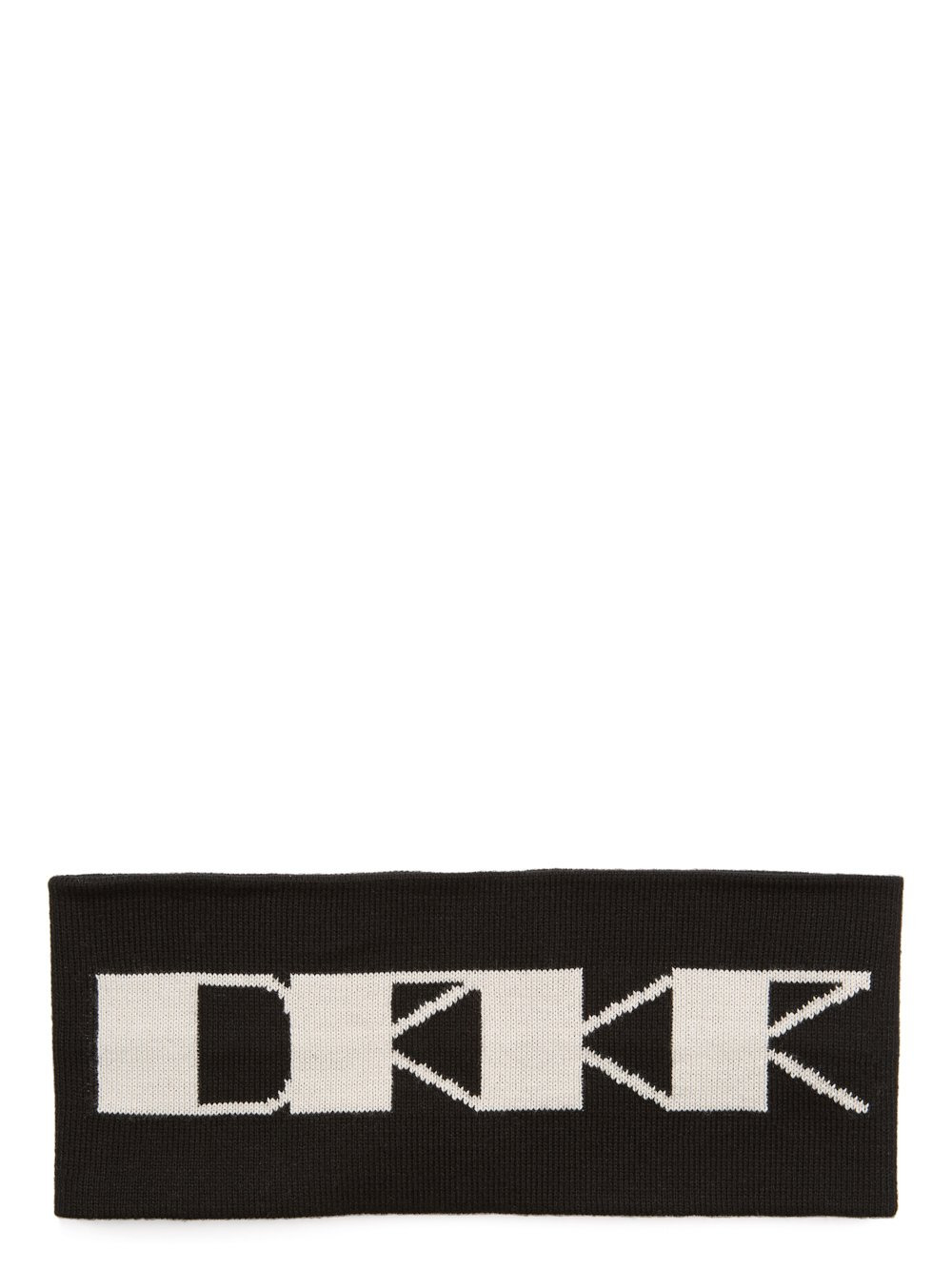 DRKSHDW FW25 CONCORDIANS HEADBAND IN BLACK/PEARL COTTON KNIT THIS HEADBAND IS 6CM WIDE AND 21CM LONG AND FEATURES THE DRKR SIGN ACROSS THE FRONT IN JACQUARD KNIT. COTTON TERRY CLOTH JERSEY COLOR: BLACK/PEARL MATERIAL:100% COTTON THIS ITEM IS AVAILABLE IN ONE SIZE