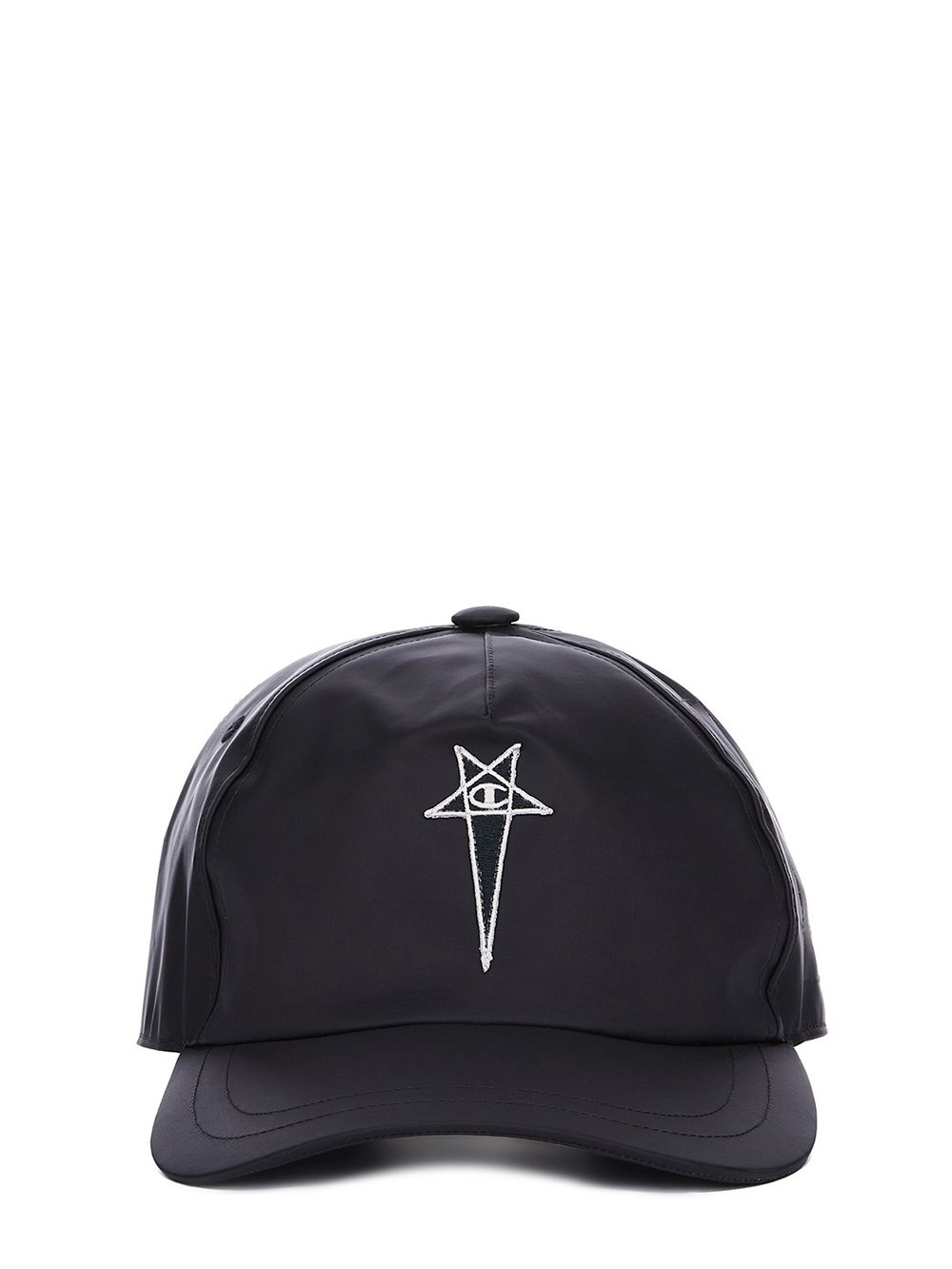 CHAMPION X RICK OWENS SS25 BASEBALL CAP IN BLACK LIGHT NYLON IT FEATURES A SMALL 3D CHAMPION X RICK OWENS PENTAGRAM LOGO PATCH ON THE FRONT THIS AIRY AND LIGHTWEIGHT NYLON IS MADE USING CERTIFIED RECYCLED NYLON WHICH ENSURES A REDUCTION IN WATER CONSUMPTION, EMISSIONS AND HAZARDOUS WASTE, LESSENING THE DEPENDENCE ON NON-RENEWABLE RESOURCES COLOR: BLACKMATERIAL: 100% POLYAMIDE