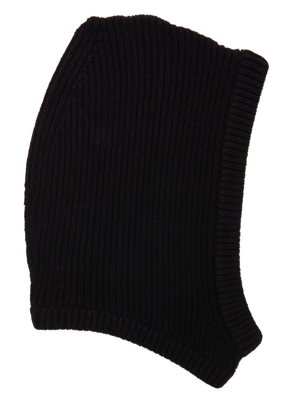 RICK OWENS FW25 CONCORDIANS HOOD IN BLACK BOILED RECYCLED CASHMERE KNIT THIS HOOD FITS OVER THE HEAD LIKE A SNOOD AND HAS A THICK RIBBED EDGE. IT CAN BE WORN AS A HOOD OR DOWN AROUND THE NECK AS A SCARF THIS SOFT CASHMERE KNIT IS MADE FROM RECYCLED YARNS COLOR: BLACK MATERIAL: 97% CASHMERE + 3% WOOL MODEL IS 189CM TALL ITEM IS AVAILABLE IN ONE SIZE