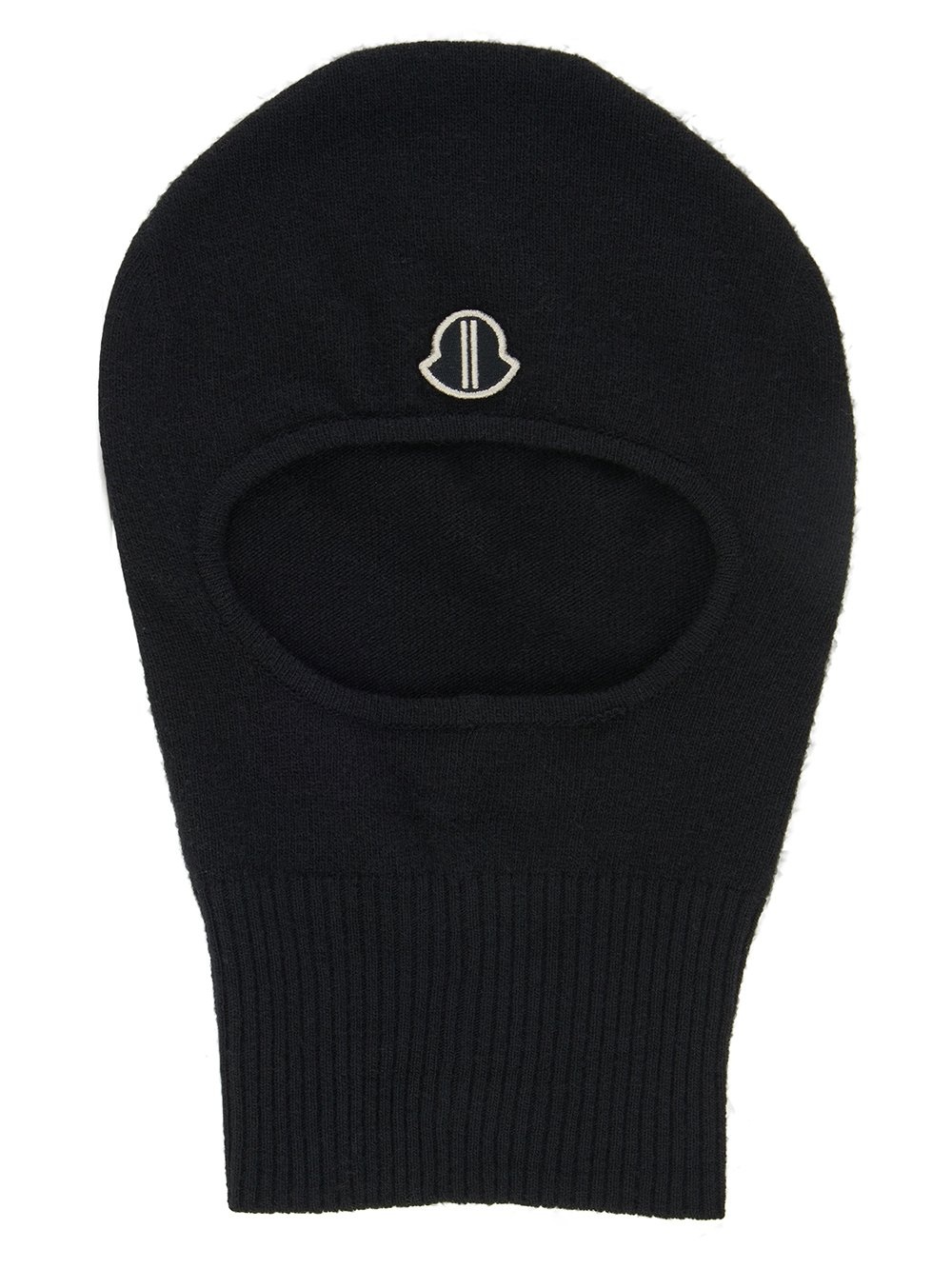 MONCLER + RICK OWENS FW24 KNIT SKULL IN BLACK WOOL-CASHMERE BLEND THIS KNIT SKULL IS A BALACLAVA THAT COVERS THE HEAD AND NECK WITH A WIDE ROUNDED OPENING FOR THE FACE AND A WIDE RIBBED NECK. IT HAS AN EMBROIDERED RICK OWENS + MONCLER PATCH ON THE FOREHEAD THIS MEDIUMWEIGHT CLASSIC STITCH KNIT HAS A SOFT AND WARM HAND FEEL - COLOR: BLACK - MATERIAL: 90% NEW WOOL + 10% CASHMERE - MALE MODEL IS 189 CM TALL, FEMALE MODEL IS 181 CM TALL - ITEM IS AVALIABLE IN ONE SIZE