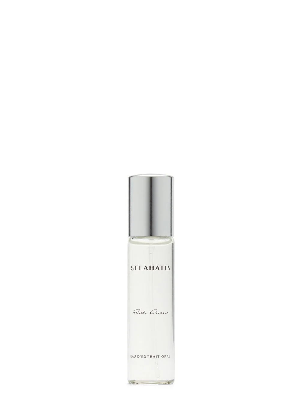 SELAHATIN X RICK OWENS EAU D'EXTRAIT THIS SELAHATIN X RICK OWENS EAU D'EXTRAIT ORAL MOUTHSPRAY COMES IN A GLASS BOTTLE AND HAS TOP NOTES OF VERBENA, MADAGASCAR VANILLA AND SICHUAN PEPPER, HEART NOTES OF JUNIPER, DARK CITRUS AND ROSEMARY ON A BLACK PEPPER AND PEPPERMINT BASE THIS ITEM HAS ANTI-INFLAMMATORY AND ANTI-OXIDANT PROPERTIES FAVORABLE FOR STRENGTHENING THE SKIN BARRIER AGAINST FREE RADICALS, BATTLING BAD BREATH AND PROTECTING THE TEETH'S ENAMEL. IT FIGHTS BACTERIA AND PROVIDES PROACTIVE CARE FOR SENSITIVE TEETH SIZE 17.5 ML INGREDIENTS:AQUA/[WATER] GLYCERIN PVP POLOXAMER 407 POLYSORBATE 20 PEG-40 HYDROGENATED CASTOR OIL PROPYLENE GLYCOL SODIUM CITRATE POTASSIUM SORBATE SODIUM BENZOATE AROMA SODIUM PHOSPHATE DISODIUM PHOSPHATE PANTHENOL ALOE BARBADENSIS LEAF JUICE POWDER BISABOLOL TOCOPHERYL ACETATE SODIUM SACCHARIN LIMONENE MENTHOL CETYLPYRIDINIUM CHLORIDE ROSMARINUS OFFICINALIS LEAF EXTRACT/[ROSMARINUS OFFICINALIS (ROSEMARY) LEAF EXTRACT] JUNIPERUS COMMUNIS FRUIT OIL PINENE CITRAL CITRUS PARADISI PEEL OIL/[CITRUS PARADISI (GRAPEFRUIT) PEEL OIL] BETA-CARYOPHYLLENE CITRUS LIMON PEEL OIL/[CITRUS LIMON (LEMON) PEEL OIL]"
