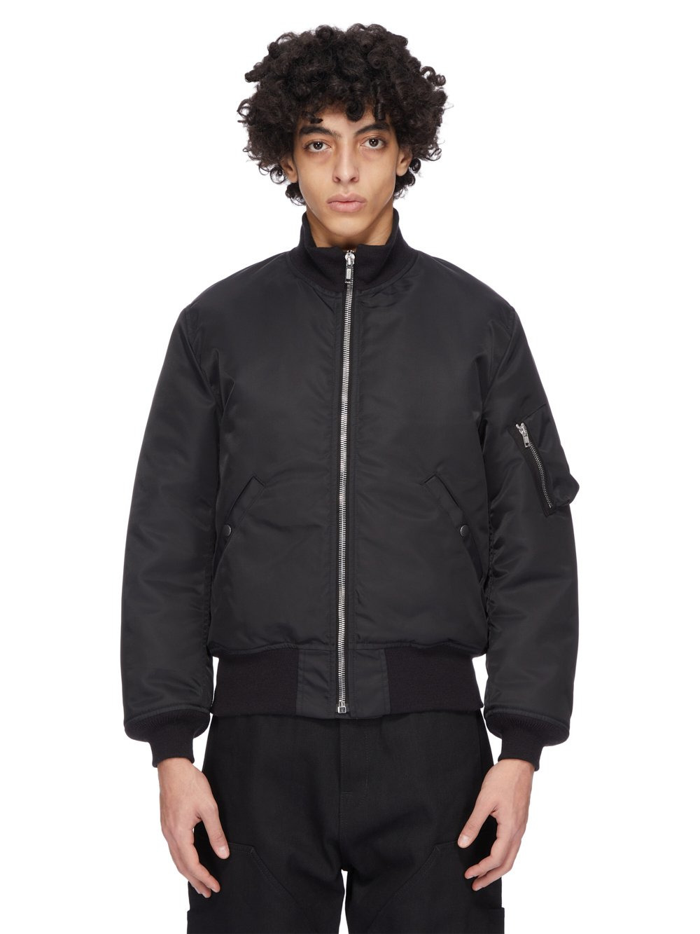 DRKSHDW FW25 CONCORDIANS TANKERS FLIGHT IN BLACK NYLON TWILL THIS TANKERS FLIGHT IS BELOW WAIST LENGTH WITH A CENTER FRONT ZIPPER CLOSURE, TWO SIDE WELT POCKETS WITH SNAPS (YKK MADE IN JAPAN) AND ONE SMALL SLEEVE UTILITY POCKET WITH ZIPPER ON THE LEFT ARM. FINISHED WITH A RIBBED FULL ZIP COLLAR, CUFFS AND WAISTBAND AN INTERNAL BLACK LEATHER PATCH (BELOW COLLAR) THIS MEDIUMWEIGHT NYLON TWILL HAS A STIFF AND TECHNICAL HANDFEEL. IT IS WOVEN IN JAPAN BY MASUDA CO LTD (EST. 1927) COLOR: BLACK MATERIAL: 100% NYLON MODEL IS 189CM TALL MODEL WEARS SIZE S