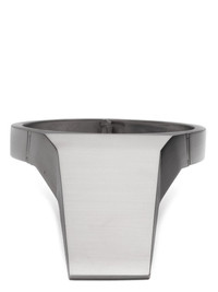 RICK OWENS PLAIN TRUNK NECKLACE IN TIN WITH PALLADIUM FINISH THIS PLAIN TRUNK NECKLACE IS A RIGID METAL CUFF WITH ONE ENLONGATED BEVELED EDGES. IT HAS A HOLLOW INTERIOR, A MAGNETIC CLASP SIDE CLOSURE AND THE RICK OWENS LOGO ENGRAVED IN THE SIDE FACE THESE JEWELLERY PIECES ARE CRAFTED WITH THE INDIVIDUAL HANDWORK OF THE ARTISAN, MAKING EACH PIECE UNIQUE. - COLOR: PALLADIO - MATERIAL: 100% TIN