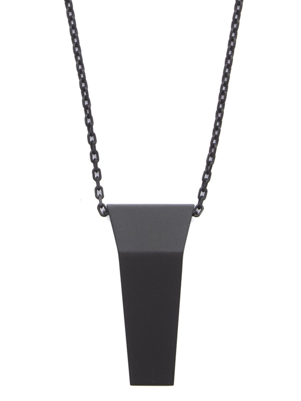 RICK OWENS TRUNK CHARM IN BRASS THIS TRUNK CHARM NECKLACE HAS A SMALL GEOMETRIC TRUNK SHAPED CHARM WITH BEVELED EDGES HANGING FROM A CHAIN NECKLACE. IT HAS THE RICK OWENS LOGO ENGRAVED ON THE BACK - COLOR: BLACK - MATERIAL: 100% BRASS
