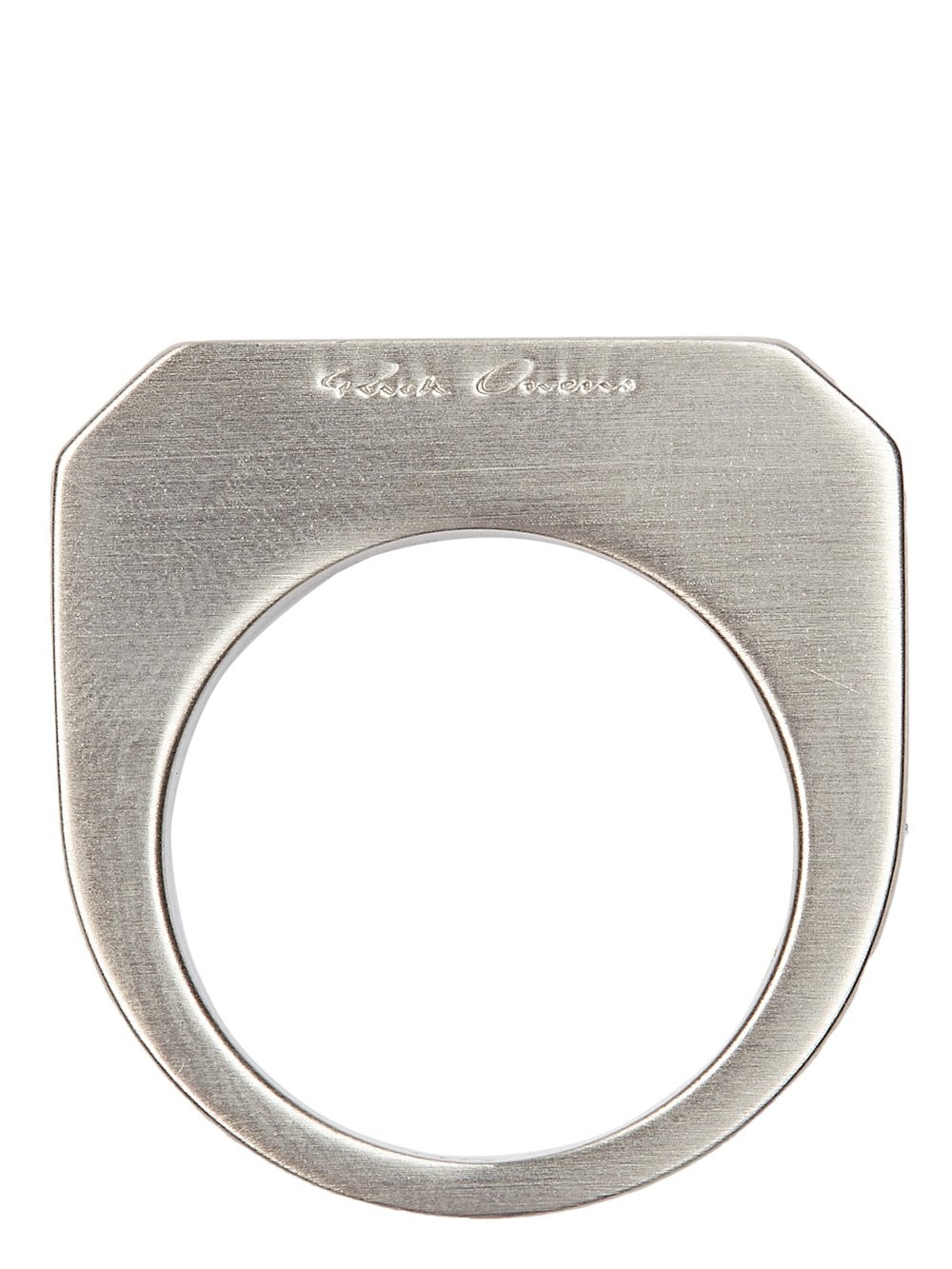 RICK OWENS HOLLYWOOD RING IN BRASS THIS HOLLYWOOD RING IS A THIN BAND WITH BEVELED EDGES THIS JEWELRY PIECE HAS A SEMI-SHINY BRUSHED PALLADIUM FINISH COLOR: PALLADIOMATERIAL: 100% BRASS