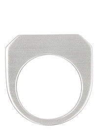 RICK OWENS SS25 HOLLYWOOD RUNWAY HOLLYWOOD RING IN BRASS THIS HOLLYWOOD RING IS A THIN BAND WITH BEVELED EDGES. IT HAS HOLLYWOOD ENGRAVED ACROSS THE TOP AND THE RICK OWENS LOGO ENGRAVED ON THE BACK. THIS JEWELRY PIECE HAS A SEMI-SHINY BRUSHED PALLADIUM FINISH COLOR: PALLADIOMATERIAL: 100% BRASS