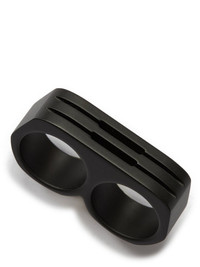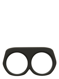 RICK OWENS SS24 LIDO DOUBLE GRILL RING IN BRASS THIS DOUBLE GRILL RING IS A DOUBLE FINGER THICK BAND WITH TWO GRILL OPENINGS. IT HAS THE RICK OWENS LOGO ENGRAVED ON THE BACK. THIS JEWLERY PIECE HAS A MATTE BLACK FINISH - COLOR: BLACK - MATERIAL: 100% BRASS - AVAILABLE IN SIZES 52 TO 60 (52-54 SUGGESTED FOR WOMEN AND 56-58-60 SUGGESTED FOR MEN)