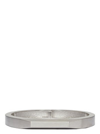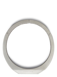 RICK OWENS BEVELED CHOKER IN ALUMINIUM THIS BEVELED CHOKER NECKLACE IS A HOLLOW METAL CHOKER WITH BEVELED EDGES. IT HAS A MAGNET CLASP CLOSURE IN THE BACK AND THE RICK OWENS LOGO ENGRAVED IN THE SIDE FACE THIS JEWELRY PIECE HAS A SEMI-SHINY BRUSHED PALLADIUM FINISH - COLOR: PALLADIO - MATERIAL: 100% ALUMINIUM
