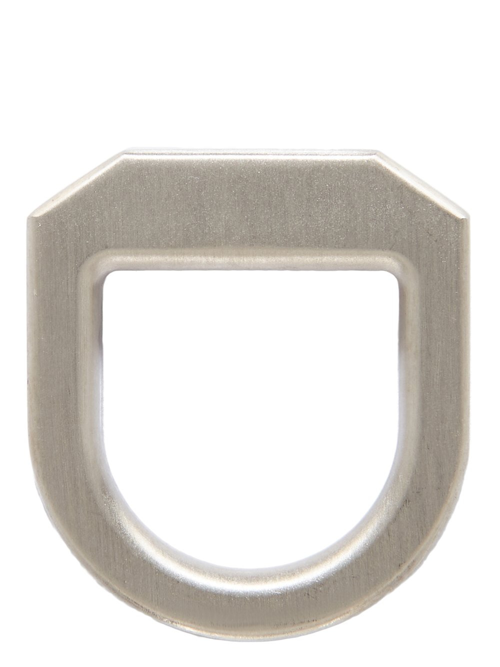 RICK OWENS BEVELED RING IN SILVER THIS BEVELED RING IN STERLING SILVER HAS THE SIGNATURE SHAPE OF OUR D-RING AND IS ENGRAVED WITH THE RICK OWENS LOGO ON THE SIDE STERLING SILVER WITH A BRUSHED PALLADIUM FINISH - COLOR: PALLADIO - MATERIAL: 100% SILVER METAL