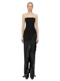 RICK OWENS FW25 CONCORDIANS RUNWAY TUBE TOP IN BLACK LIGHTWEIGHT CASHMERE KNIT THIS BANDEAU TOP IS A SIMPLE TIGHT KNIT TUBE TOP FINISHING BELOW THE HIP. T HAS A FRONT SEAM AND A SIGNATURE CHANNEL RUNNING DOWN THE SPINE THIS LIGHTWEIGHT AND CLASSIC STITCH CASHMERE KNIT HAS A SOFT HANDFEEL COLOR: BLACK MATERIAL: 100% CASHMERE MODEL IS 181CM TALL MODEL WEARS SIZE S