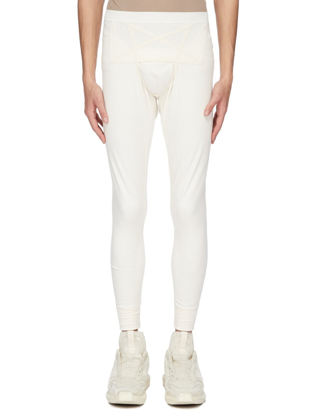 RICK OWENS FW25 CONCORDIANS RUNWAY THERMAL BOTTOM IN NATURAL THERMAL JERSEY THIS THERMAL BOTTOM IS ANKLE LENGTH. IT HAS AN ELASTICIZED WAISTBAND, ANKLE CUFFS AND PENTAGRAM STITCHING ACROSS THE FRONT THIS MEDIUMWEIGHT VISCOSE AND WOOL BLEND JERSEY IS WARM AND COMPACT WITH A BRUSHED BACKSIDE AND COMFORT STRETCH THIS JERSEY IS MADE FROM FSC® CERTIFIED VISCOSE WHICH ENSURES THAT THE FIBERS ARE PRODUCED FROM RESPONSIBLY MANAGED SOURCES AND NO DEFORESTATION OCCURS WE STRIVE TO KEEP OUR PRODUCTION AS LOCAL AS POSSIBLE. THE FULL MANUFACTURING CYCLE OF THIS PRODUCT, FROM THE MATERIAL KNITTING TO SEWING AND FINISHING, WAS UNDERTAKEN CLOSE TO OUR HOME BASE IN CONCORDIA, ITALY COLOR: NATURAL MATERIAL: 65% VISCOSE + 14% WOOL + 14% NYLON + 7% ELASTANEMODEL IS 189CM TALL MODEL WEARS SIZE 48