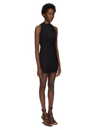 RICK OWENS FW25 CONCORDIANS LUNA DRESS IN BLACK VISCOSE CREPE JERSEY THIS LUNA DRESS IS MID-THIGH LENGTH AND SLEEVELESS. IT FEATURES A HIGH DRAPED NECKLINE AND HAS A BODY HUGGING FIT THAT DRAPES ACROSS THE BODY FROM RIGHT TO LEFT ALONG A BIAS SEAM THIS LIGHTWEIGHT AND FLUID VISCOSE CREPE JERSEY IS STRETCHY AND HAS A MATTE CREPE FACE SIDE AND A SOFT BACKSIDE THIS LIGHTWEIGHT AND FLUID VISCOSE CREPE JERSEY IS STRETCHY AND HAS A MATTE CREPE FACE SIDE AND A SOFT BACKSIDE. THIS JERSEY IS MADE FROM FSC® - CERTIFIED (FSC - C162846) VISCOSE WHICH ENSURES THAT THE FIBERS ARE PRODUCED FROM RESPONSIBLY MANAGED SOURCES AND NO DEFORESTATION OCCURS COLOR: BLACK MATERIAL: 78% VISCOSE + 17% NYLON + 5% ELASTANE MODEL IS 181CM TALL MODEL WEARS SIZE 40