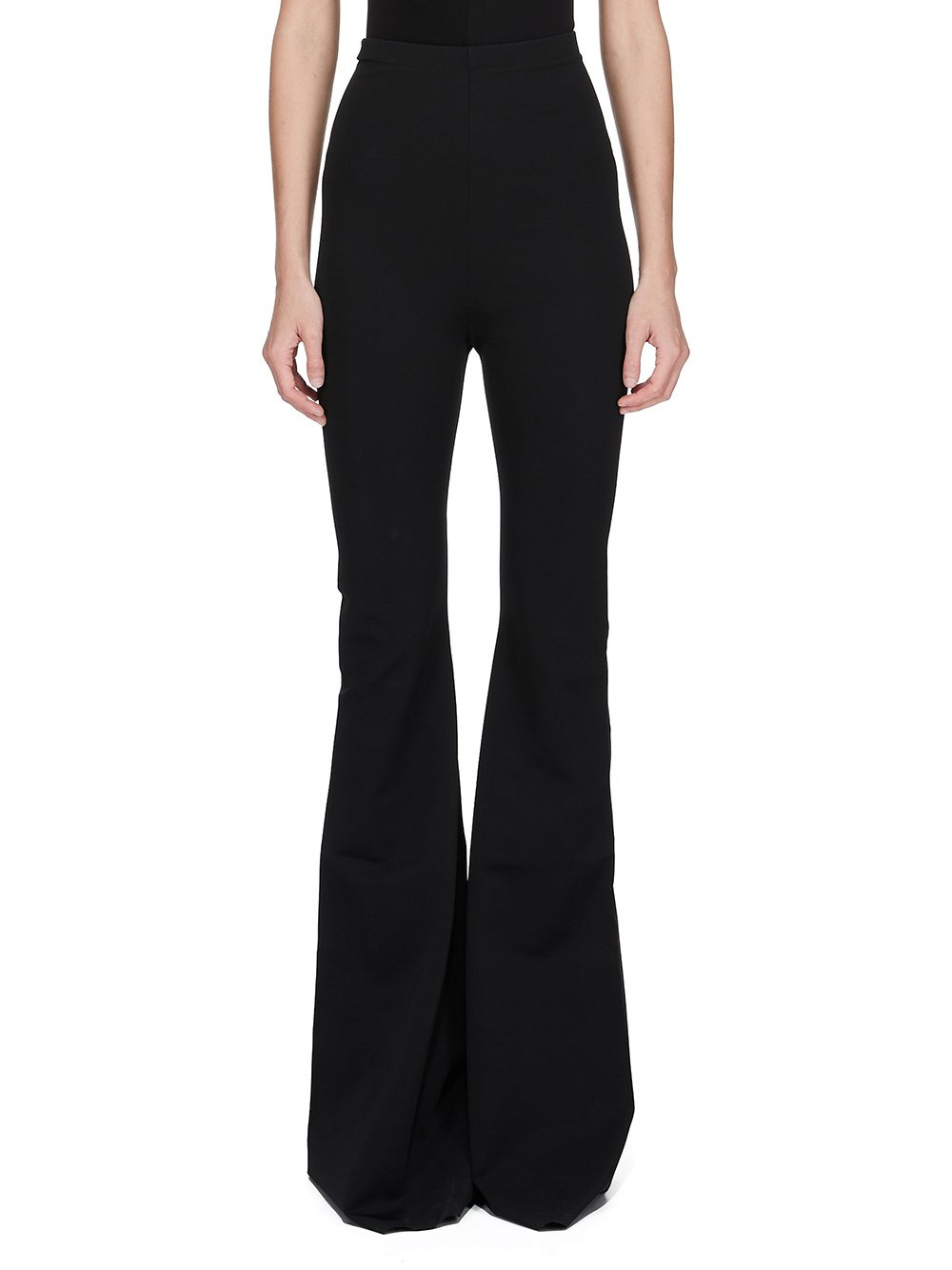 RICK OWENS FW25 CONCORDIANS DIRT BOLAN IN BLACK COMPACT STRETCH JERSEY THESE DIRT BOLAN ARE FULL-LENGTH, WITH A SKIN TIGHT FIT. THEY FEATURE AN EXTRA HIGH WAIST AND A FIT THAT FLARES FROM THE KNEE THIS HEAVYWEIGHT STRETCH JERSEY IS COMPACT WITH A DRY HANDFEEL THIS JERSEY IS MADE FROM FSC® – C162846 CERTIFIED VISCOSE WHICH ENSURES THAT THE FIBERS ARE PRODUCED FROM RESPONSIBLY MANAGED SOURCES AND NO DEFORESTATION OCCURS COLOR: BLACK MATERIAL: 85% VISCOSE + 9% NYLON + 6% ELASTANE MODEL IS 181CM TALL MODEL WEARS SIZE 40