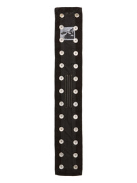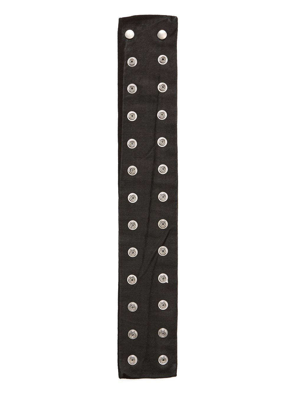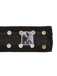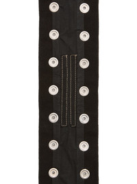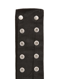 DRKSHDW FW25 CONCORDIANS STROBE NECK BAND IN 13OZ BLACK WAX DENIM THIS STROBE NECK BAND IS A DENIM STRAP WITH ALL OVER SNAPS, TO BE WORN AROUND THE NECK. THIS MEDIUMWEIGHT BLACK WAX DENIM IS MADE ON A 13OZ JAPANESE BLACK AND NATURAL DENIM. THE READY GARMENT IS OVERDYED BLACK AND TREATED WITH A WAX FINISH. A FINAL WASH GIVES THIS GARMENT ITS SOFTNESS THIS GARMENT IS TREATED IN AN ITALIAN WASH HOUSE BASED IN THE VENETO AREA OF ITALY, THAT PRODUCES IN SMALLER TREATMENT BATHS TO REDUCE WATER WASTE AND UTILIZE A WATER PURIFYING PROCESS THAT ENABLES THEM TO RECYCLE A PORTION OF THE WATER USED. ALL OF OUR DENIM WASHES ARE ZDHC CERTIFIED COLOR: BLACK WAX MATERIAL: 100% COTTON THIS ITEM IS AVAILABLE IN ONE SIZE