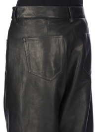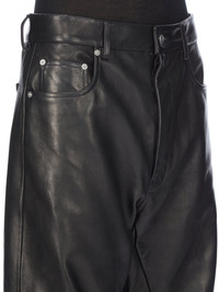 RICK OWENS FW25 CONCORDIANS GETH JEANS IN BLACK VEG NAPPA LAMB THESE GETH JEANS ARE A FULL LENGTH 5 POCKET JEAN WITH A LOW-RISE AND WIDE FIT. THEY HAVE A SILVER BUTTON FLY, BELT LOOPS AND POCKET RIVETS THIS MEDIUMWEIGHT LAMB LEATHER IS VEG TANNED AND FINISHED USING NATURAL WAXES AND ANILINE WHICH MAKES A SUPPLE HANDFEEL. BECAUSE THIS SKIN IS NAKED, NOT FINISHED USING ANY PIGMENTS COVERING THE SKIN, NATURAL MARKINGS AND SHADINGS ARE VISIBLE WHICH MAKES EACH SKIN AND PRODUCT UNIQUE VEG TANNING MEANS ONLY VEGETAL AND NATURAL TANNINS WERE USED IN THE PROCESS OF TANNING AND PRESERVING THIS LEATHER COLOR: BLACK MATERIAL: 100% LAMB LEATHER LINING 100% COTTON MODEL IS 189CM TALL MODEL WEARS SIZE 31