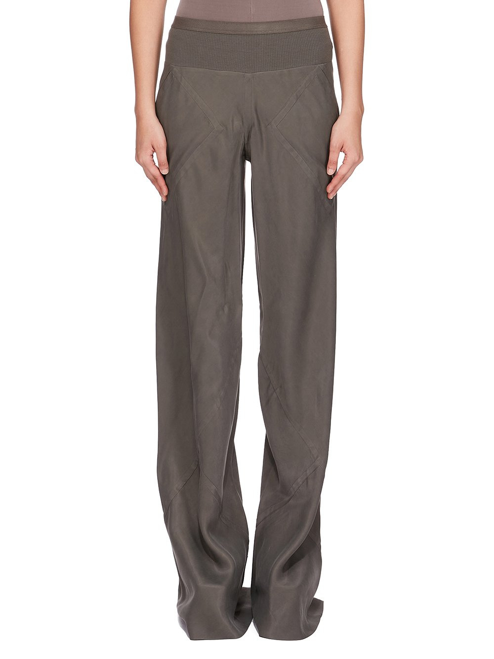 RICK OWENS FW25 CONCORDIANS BIAS IN BOSCO WASHED CUPRO THESE BIAS PANTS ARE FLOOR-LENGTH, THEY ARE LOOSE FITTING AND BIAS CUT, WITH DIAGONAL BIAS SEAMS TRACING AROUND THE LEGS. THEY HAVE SQUARE SIDE POCKETS, A ELASTIC AND RIBBING WAISTBAND RAW CUT HEMS THIS MEDIUMWEIGHT WASHED CUPRO SATIN IS FLUID AND FINISHED WITH ENZYMES WHICH GIVES THIS FABRIC ITS PEACH HANDFEEL THIS FABRIC IS MADE USING CUPRO WHICH IS BIODEGRADABLE AND 100% PLANT BASED. AS IT’S MADE FROM COTTON WASTE, CUPRO HELPS FIND A PURPOSE TO FIBERS THAT WOULD OTHERWISE BE DISCARDED COLOR: BOSCO MATERIAL: 100% CUPRO BAND 65% COTTON + 35% NYLON MODEL IS 181CM TALL MODEL WEARS SIZE 40