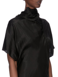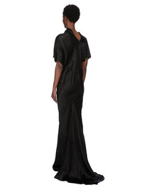 RICK OWENS SS26 TEMPLE SEB GOWN IN BLACK CUPRO SATIN THIS SEB GOWN IS FLOOR-LENGTH, WITH A DRAPED BIAS CUT BODY, SHORT WIDE KIMONO SLEEVES AND A HIGH DRAPED COWL NECK THAT HAS AN ASYMMETRICAL OPENING AT BACK. IT FALLS TO THE FLOOR AND HAS A FISHTAIL AT BACK. THIS LIGHTWEIGHT AND FLUID CUPRO SATIN HAS A GLOSSY SURFACE, A SOFT HANDFEEL AND WASHED FINISH. THIS FABRIC IS MADE USING CUPRO WHICH IS BIODEGRADABLE AND 100% PLANT BASED. AS IT’S MADE FROM COTTON WASTE, CUPRO HELPS FIND A PURPOSE TO FIBERS THAT WOULD OTHERWISE BE DISCARDED. COLOR: BLACK MATERIAL:100% CUPRO MODEL IS 181CM TALL MODEL WEARS SIZE 40