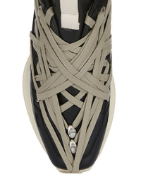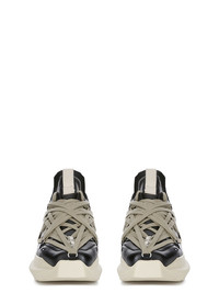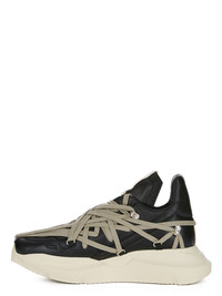 RICK OWENS FW25 CONCORDIANS MEGALACE GETH RUNNER IN BLACK/PEARL/MILK FULL GRAIN COW LEATHER THIS MEGALACE GETH RUNNER IS UNDER ANKLE HEIGHT. THEY HAVE A CUSHIONED BACK RISING TO A POINT, AN INTEGRATED ANGLED SIDE STRIPE AND A BEVELED EXTENDED TONGUE WITH WEBBING DETAIL. IT HAS A THICK GEOMETRIC GETH SOLE WITH AN ANGLED, EXTENDED HEEL AND FEATURE THE SIGNATURE MEGA-LACING DETAIL IN A PENTAGRAM SHAPE COVERING THE FRONT THIS MEDIUMWEIGHT FULL GRAIN COW LEATHER HAS A FLAT AND MATTE SURFACE FINISH AND IS SPECIFICALLY TANNED FOR SHOES WITH AN ABRASION-RESISTANT FINISH THIS TANNERY IS LWG CERTIFIED WITH A BRONZE RATING COLOR: BLACK/PEARL/MILK MATERIAL: UPPER 100% COW LEATHER LINING 100% CALF LEATHER INSOLE 100% CALF LEATHER SOLE 100% E.V.A SOLE AT HIGHEST POINT 6CM