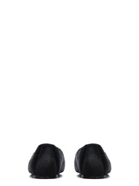 RICK OWENS FW25 CONCORDIANS BALLERINA IN BLACK UNSHAVED COW LEATHER THESE BALLERINA ARE A FLAT HEELED, SLIP-ON SHOE WITH A SQUARE TOE THIS HEAVYWEIGHT LEATHER IS A HAIR-ON COWHIDE WITH NATURAL LENGTH COARSE HAIR THIS LEATHER IS TANNED IN THE VENETO AREA OF ITALY BY A TANNERY SPECIALIZED IN HAIR-ON COW LEATHER. BECAUSE THE HAIR IS NATURAL THERE CAN BE INCONSISTENCY IN THE LENGTH DIRECTION, TEXTURE AND COLOR THIS TANNERY IS LWG CERTIFIED WITH A SILVER RATING COLOR: BLACK MATERIAL: UPPER 100% COW REAL FUR LINING 100% CALF LEATHER INSOLE 100% CALF LEATHER SOLE 100% COW LEATHER