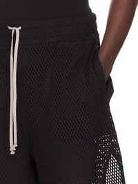 CHAMPION X RICK OWENS SS25 SHORTS IN BLACK OPEN MESH JERSEY THEY HAVE A 3D EMBROIDERED SIGNATURE CHAMPION X RICK OWENS CHAMPION LOGO ON THE BACK HIP THIS MEDIUMWEIGHT OPEN MESH JERSEY IS KNITTED ON A SPECIALISED MACHINE THAT LEAVE LARGE OPENINGS IN THE JERSEY. IT HAS A DRY HANDFEEL THIS JERSEY IS MADE USING CERTIFIED ORGANIC COTTON WHICH MEANS THE NATURAL FIBER IS GROWN WITHOUT HARMFUL CHEMICALS, LEAVING OUR SOIL, AIR AND WATER CLEANER FROM CONTAMINATES COLOR: BLACKMATERIAL: 100% COTTON MODEL WEARS SIZE M MODEL IS 189CM TALL
