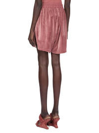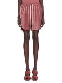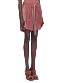RICK OWENS FW25 CONCORDIANS BOXERS IN ROSEWOOD VELVET THESE BOXERS ARE ABOVE KNEE LENGTH. THEY HAVE AN ELASTICIZED WAIST, A SLIGHTLY DROPPED CROTCH, SIDE WELT POCKETS AND BEVELED SIDE SLITS THIS LIGHTWEIGHT AND FLUID VELVET HAS A SOFT AND WASHED UNEVEN FINISH THIS FABRIC IS MADE FROM FSC® CERTIFIED VISCOSE WHICH ENSURES THAT THE FIBERS ARE PRODUCED FROM RESPONSIBLY MANAGED SOURCES AND NO DEFORESTATION OCCURS COLOR: ROSEWOOD MATERIAL: 82% VISCOSE + 18% SILK BAND 100% CUPRO MODEL IS 181CM TALL MODEL WEARS SIZE 40