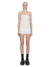 RICK OWENS FW25 CONCORDIANS RUNWAY BOXING SHORTS IN MILK LIGHT NYLON THESE BOXING SHORTS ARE CUT HIGH ON THE THIGH. THEY HAVE A HIDE AND WIDE BOXING SHORT ELASTICIZED WAISTBAND WITH DRAWSTRING, AND HIGH BEVELED SIDE SLITS THIS AIRY AND LIGHTWEIGHT NYLON IS MADE USING GRS CERTIFIED RECYCLED NYLON WHICH ENSURES A REDUCTION IN WATER CONSUMPTION, EMISSIONS AND HAZARDOUS WASTE, LESSENING THE DEPENDENCE ON NON-RENEWABLE RESOURCES COLOR: MILK MATERIAL: 100% NYLON MODEL IS 181CM TALL MODEL WEARS SIZE 40