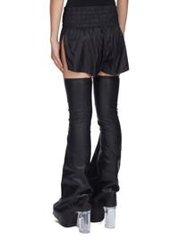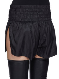 RICK OWENS FW25 CONCORDIANS RUNWAY BOXING SHORTS IN BLACK LIGHT NYLON THESE BOXING SHORTS ARE CUT HIGH ON THE THIGH. THEY HAVE A HIDE AND WIDE BOXING SHORT ELASTICIZED WAISTBAND WITH DRAWSTRING, AND HIGH BEVELED SIDE SLITS THIS AIRY AND LIGHTWEIGHT NYLON IS MADE USING GRS CERTIFIED RECYCLED NYLON WHICH ENSURES A REDUCTION IN WATER CONSUMPTION, EMISSIONS AND HAZARDOUS WASTE, LESSENING THE DEPENDENCE ON NON-RENEWABLE RESOURCES COLOR: BLACK MATERIAL: 100% NYLON MODEL IS 181CM TALL MODEL WEARS SIZE 40