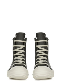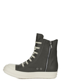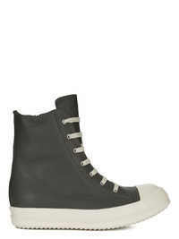 RICK OWENS FW25 CONCORDIANS SNEAKERS IN BOSCO/MILK/MILK FULL GRAIN COW LEATHER THESE SNEAKERS ARE ABOVE-ANKLE HEIGHT AND FEATURE SEVEN EYELETS, LACES, A ZIPPER ON THE INSIDE ANKLE FOR EASY FASTENING, TOE CAPS AND SHARK-TOOTHED BUMPER SOLES THIS MEDIUMWEIGHT FULL GRAIN COW LEATHER HAS A FLAT AND MATTE SURFACE FINISH AND IS SPECIFICALLY TANNED FOR SHOES WITH AN ABRASION-RESISTANT FINISH THIS TANNERY IS LWG CERTIFIED WITH A BRONZE RATING COLOR: BOSCO/MILK/MILK MATERIAL: UPPER 100% COW LEATHER TOE 100% CALF LEATHER LINING 100% CALF LEATHER INSOLE 100% CALF LEATHER SOLE 100% THERMOPLASTIC RUBBER SOLE HEIGHT 3.5CM