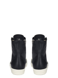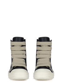 RICK OWENS FW25 CONCORDIANS JUMBOLACE SNEAKERS IN BLACK/MILK/MILK FULL GRAIN COW LEATHER THESE JUMBOLACE SNEAKERS ARE ABOVE-ANKLE HEIGHT AND FEATURE EYELETS, JUMBO LACES, A ZIPPER ON THE INSIDE ANKLE FOR EASY FASTENING, TOE CAPS AND SHARK-TOOTHED BUMPER SOLES. THIS MEDIUMWEIGHT FULL GRAIN COW LEATHER HAS A FLAT AND MATTE SURFACE FINISH AND IS SPECIFICALLY TANNED FOR SHOES WITH AN ABRASION-RESISTANT FINISH THIS TANNERY IS LWG CERTIFIED WITH A BRONZE RATING COLOR: BLACK/MILK/MILK MATERIAL: UPPER 100% COW LEATHER TOE 100% CALF LEATHER LINING 100% CALF LEATHER INSOLE 100% CALF LEATHER SOLE 100% THERMOPLASTIC RUBBER SOLE HEIGHT 3.5CM