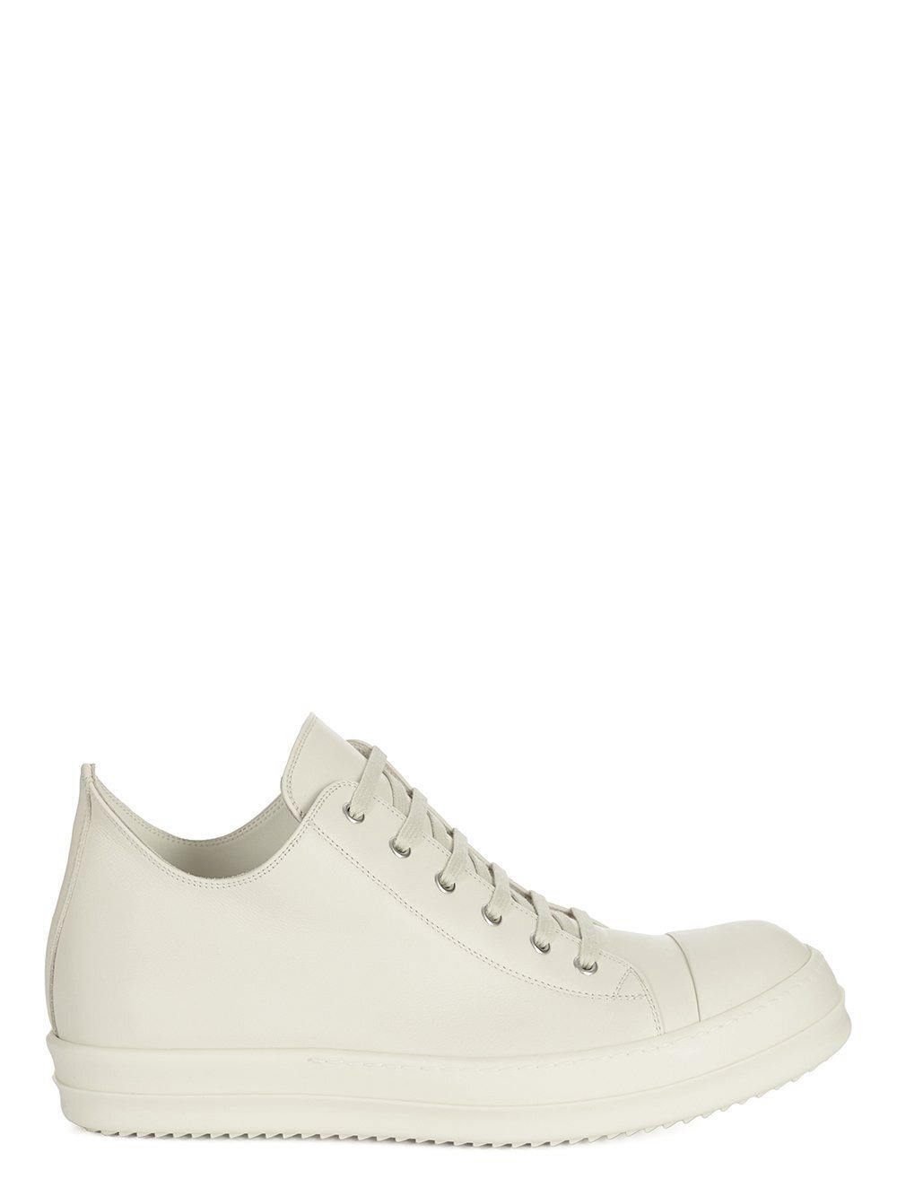 RICK OWENS FW25 CONCORDIANS LOW SNEAKS IN WASHED MILK/MILK/MILK FULL GRAIN COW LEATHER THESE LOW SNEAKS ARE UNDER ANKLE HEIGHT, RISING AT THE BACK AND FEATURE SIX EYELETS, LACES, TOE CAPS AND SHARK-TOOTHED BUMPER SOLES THIS MEDIUMWEIGHT FULL GRAIN COW LEATHER HAS A FLAT AND MATTE SURFACE FINISH AND IS SPECIFICALLY TANNED FOR SHOES WITH AN ABRASION-RESISTANT FINISH THIS TANNERY IS LWG CERTIFIED WITH A BRONZE RATING COLOR: MILK/MILK/MILK MATERIAL: UPPER 100% COW LEATHER TOE 100% CALF LEATHER LINING 100% CALF LEATHER INSOLE 100% CALF LEATHER SOLE 100% THERMOPLASTIC RUBBER SOLE HEIGHT 3.5CM