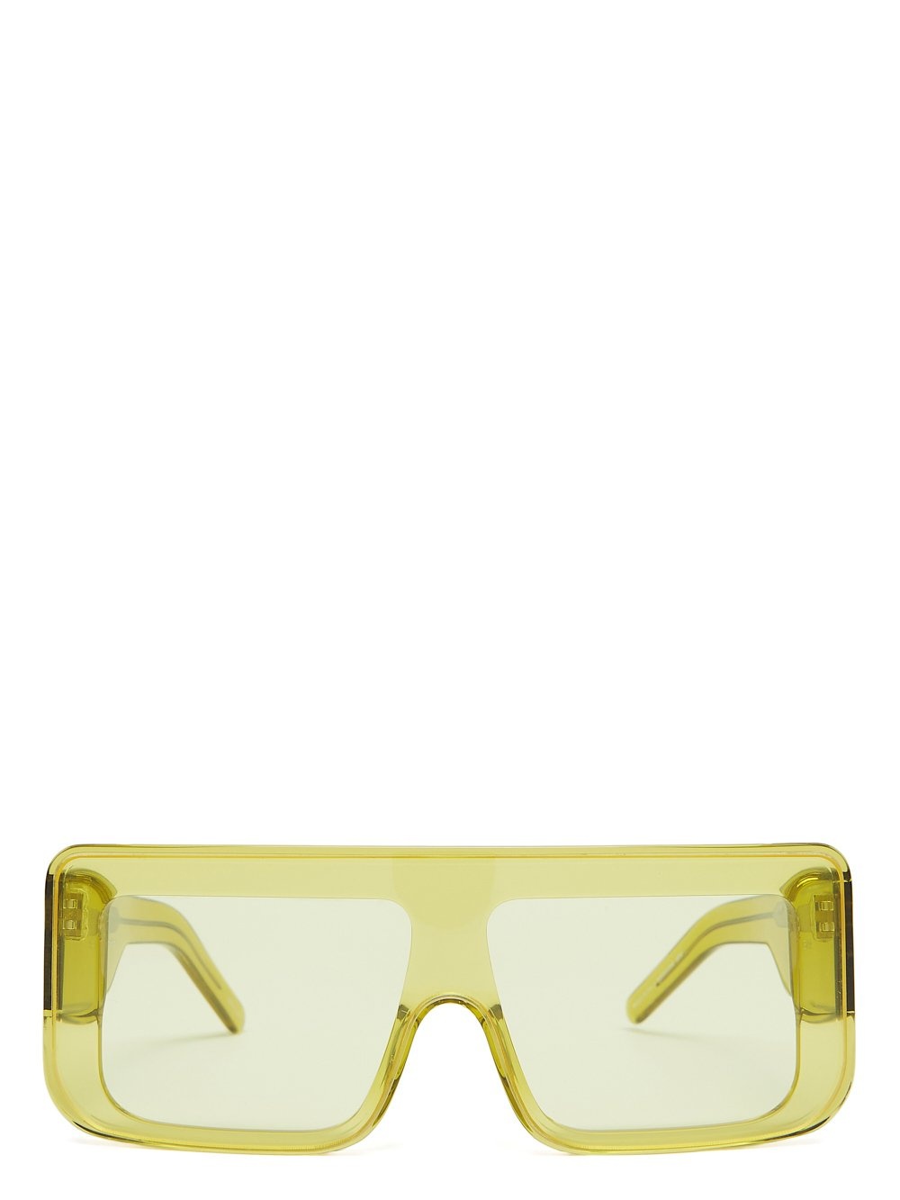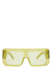 RICK OWENS FW25 CONCORDIANS DOCUMENTA SUNGLASSES THESE DOCUMENTA SUNGLASSES FEATURE A LARGE ACETATE RECTANGULAR FRAME AND A BLACK SINGLE CUT LENS. THEY HAVE WIDE ARMS WITH THE SIGNATURE TRIO OF SILVER RIVETS ON EACH TEMPLE AND RICK OWENS LOGO ON INSIDE RIGHT COLOR: ACID FRAME: 100% ACETATE LENSES: 100% NYLON NOT SUITABLE FOR CONVERSION INTO PRESCRIPTION GLASSES
