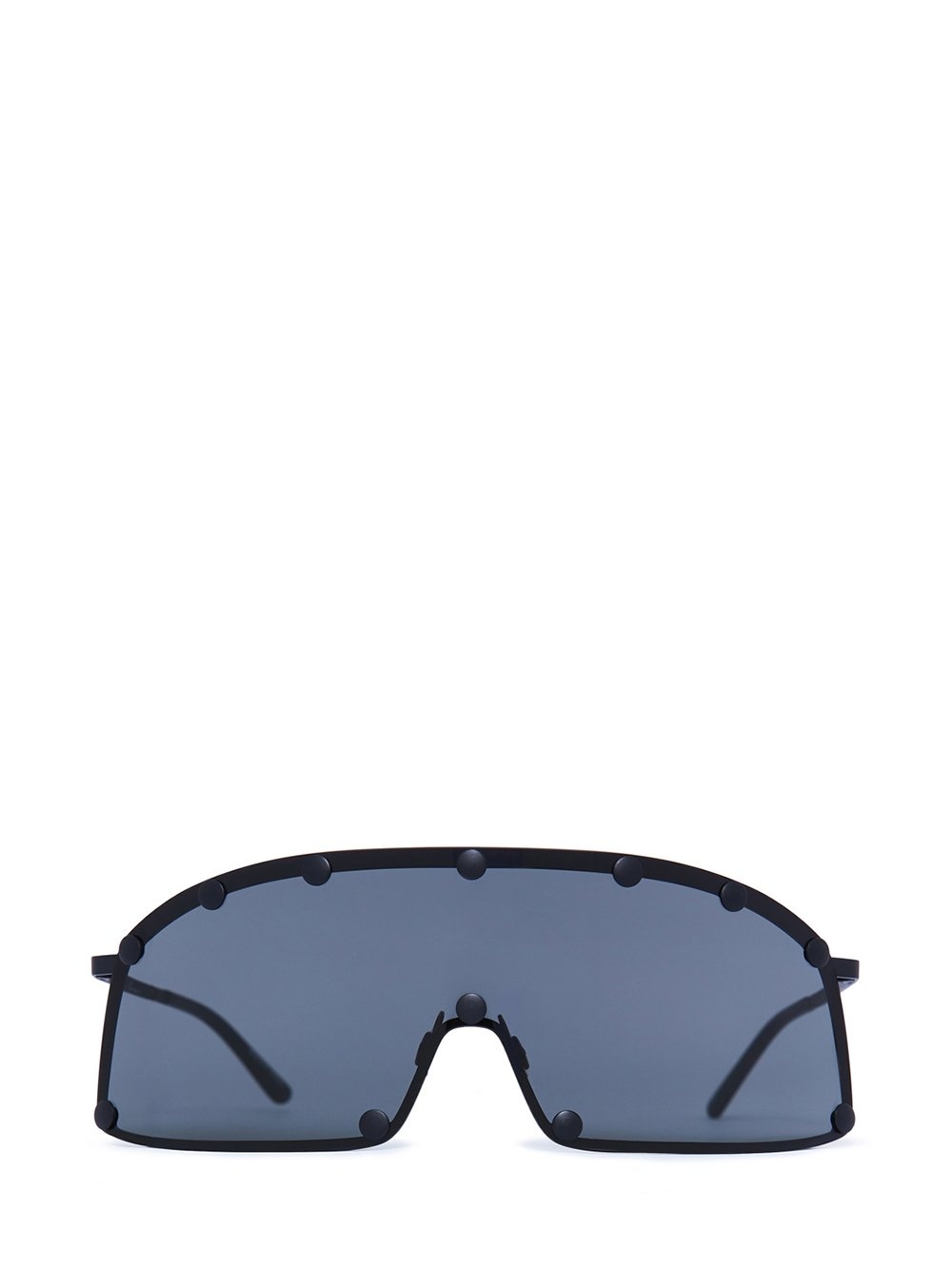 RICK OWENS SHIELDING SUNGLASSES THESE SUNGLASSES FEATURE A BLACK SURGICAL STAINLESS STEEL FRAME, A STRAIGHT-BOTTOMED BLACK LENSE AND A RUBBER NOSE PAD - COLOR: BLACK - FRAME: 100% STAINLESS STEEL -LENSES: 100% NYLON -NOT SUITABLE FOR CONVERSION INTO PRESCRIPTION GLASSES