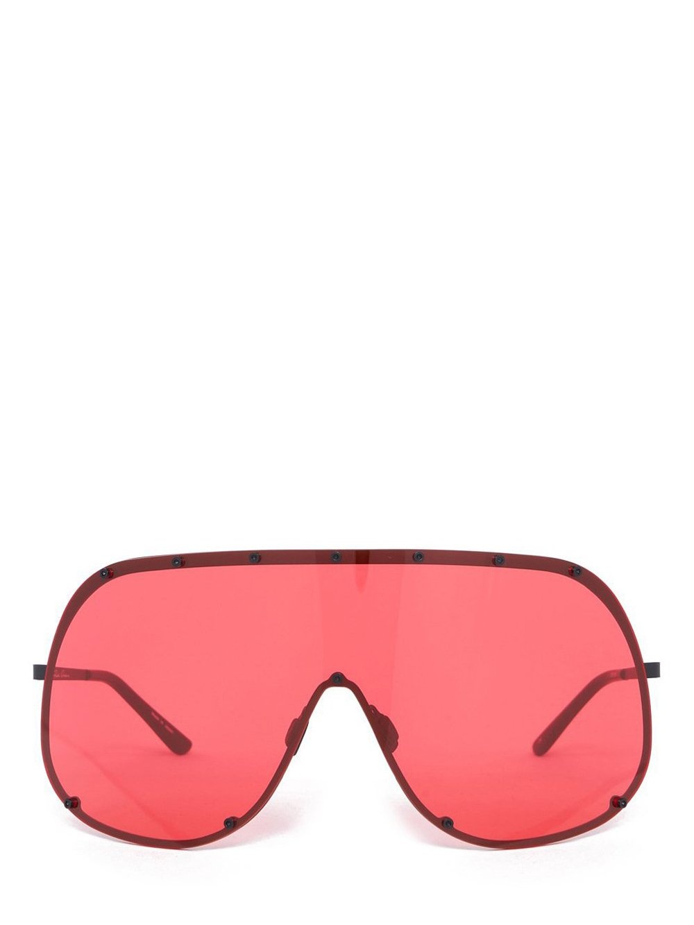 RICK OWENS SHIELD SUNGLASSES THESE SHIELD SUNGLASSES FEATURE A SURGICAL STAINLESS STEEL FRAME, A SINGLE VOLUMINOUS CURVED CORRESPONDING LENS SECURED WITH SCREWS AND A RUBBER NOSE PAD. THEY HAVE SLIM METAL ARMS WITH THE RICK OWENS LOGO ON THE INSIDE RIGHT TEMPLE. NOT SUITABLE FOR CONVERSION INTO PRESCRIPTION GLASSES - COLOR: BLACK, RED - FRAME: 100% STAINLESS STEEL - LENSES: 100% NYLON - MEASURES: 20CM X 8CM X 6CM -NOT SUITABLE FOR CONVERSION INTO PRESCRIPTION GLASSES