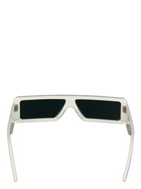 RICK OWENS GETHSEMANE GETHSHADES THESE GETH SUNGLASSES FEATURE A SLEEK AND SLIM RECTANGULAR BLACK ACETATE FRAME WITH A SINGLE CUT LENS. THEY HAVE WIDE ARMS WITH THE SIGNATURE TRIO OF SILVER RIVETS ON EACH TEMPLE AND RICK OWENS LOGO ON INSIDE RIGHT - COLOR: PEARL TEMPLE/FOREST LENS - MATERIAL: FRAME 100% ACETATE - LENSES 100% NYLON -NOT SUITABLE FOR CONVERSION INTO PRESCRIPTION GLASSES