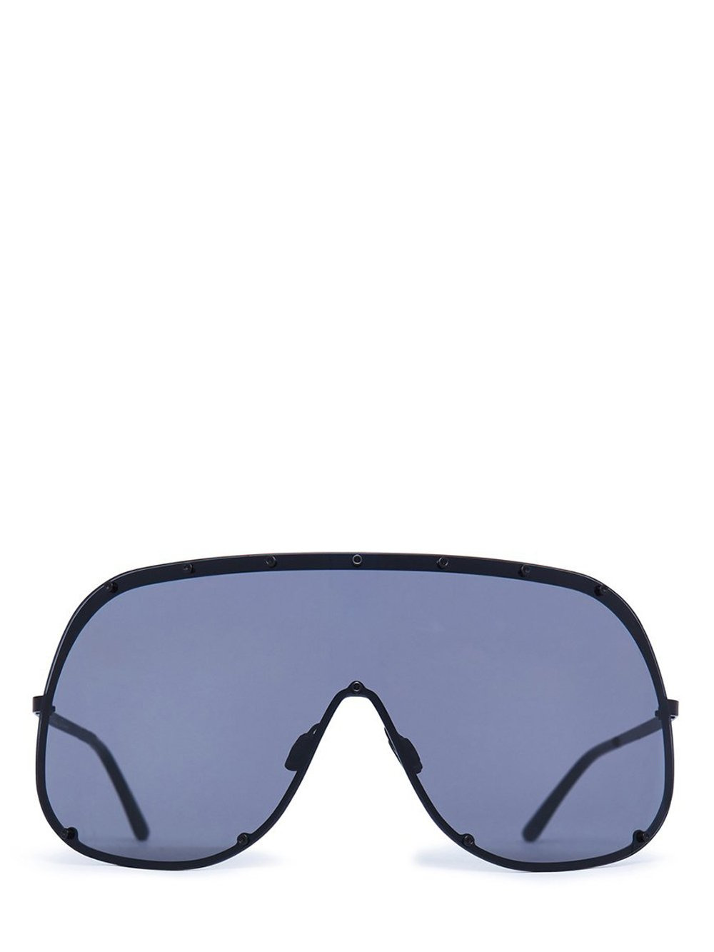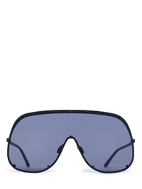 RICK OWENS SHIELD SUNGLASSES RICK OWENS SHIELD SUNGLASSES FEATURES A BLACK SURGICAL STAINLESS STEEL FRAME , A VOLUMINOUS CURVED BLACK LENS AND A RUBBER NOSE PAD THIS BLACK LENS PROVIDES A HIGH LEVEL UV PROTECTION - COLOR: BLACK - FRAME: 100% STAINLESS STEEL - LENSES: 100% NYLON - MEASURES: 20CM X 8CM X 6CM -NOT SUITABLE FOR CONVERSION INTO PRESCRIPTION GLASSES