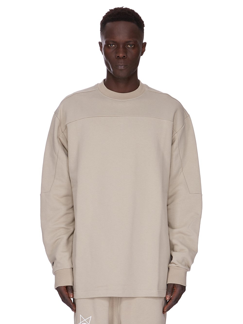 CHAMPION X RICK OWENS SS25 GIRDERED SWEAT IN PEARL COMPACT FELPA JERSEY IT FEATURES A 3D EMBROIDERED SIGNATURE CHAMPION X RICK OWENS CHAMPION LOGO ON RIGHT WRIST THIS HEAVYWEIGHT JERSEY IS COMPACT WITH A DRY HANDFEEL THIS JERSEY IS MADE USING CERTIFIED ORGANIC COTTON WHICH MEANS THE NATURAL FIBER IS GROWN WITHOUT HARMFUL CHEMICALS, LEAVING OUR SOIL, AIR AND WATER CLEANER FROM CONTAMINATES COLOR: PEARL MATERIAL: 100% COTTON INSERTS 96% COTTON + 4% ELASTANE MODEL WEARS SIZE M MODEL IS 189CM TALL