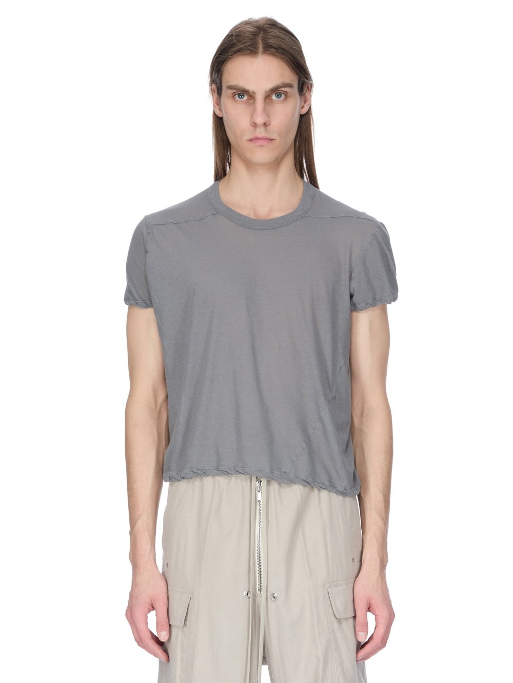 RICK OWENS FW25 CONCORDIANS SHORT LEVEL T IN WASHED INDIGO UNSTABLE COTTON THIS SHORT LEVEL T IS ABOVE HIP LENGTH WITH SHORT SLEEVES AND A RIBBED CREW NECK. IT FEATURES SIGNATURE FRONT LEVEL SHOULDER SEAMS AND SINGLE SEAM RUNNING DOWN THE CENTRE BACK SPINE THIS LIGHTWEIGHT COTTON JERSEY IS SEMI-TRANSPARENT WITH A SOFT HANDFEEL THIS JERSEY IS MADE USING GOTS CERTIFIED ORGANIC COTTON WHICH MEANS THE NATURAL FIBER IS GROWN WITHOUT HARMFUL CHEMICALS, LEAVING OUR SOIL, AIR AND WATER CLEANER FROM CONTAMINATES WE STRIVE TO KEEP OUR PRODUCTION AS LOCAL AS POSSIBLE. THE FULL MANUFACTURING CYCLE OF THIS PRODUCT, FROM THE MATERIAL KNITTING TO SEWING AND FINISHING, WAS UNDERTAKEN CLOSE TO OUR HOME BASE IN CONCORDIA, ITALY COLOR: WASHED INDIGO MATERIAL: 100% COTTON MODEL IS 189CM TALL MODEL WEARS SIZE S