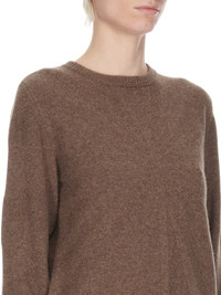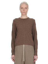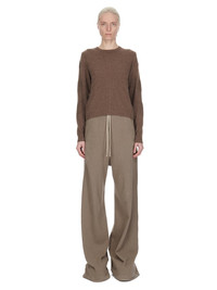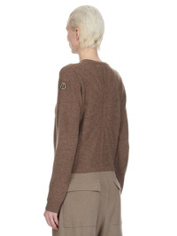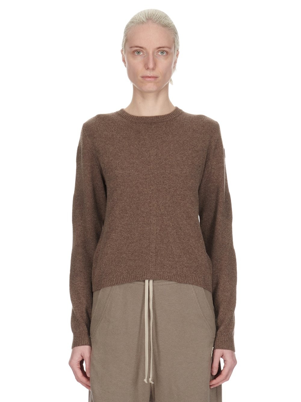 MONCLER + RICK OWENS FW24 BIKER ROUND NECK IN DUST WOOL-CASHMERE BLEND THIS BIKER ROUND NECK SWEATER IS ABOVE-HIP LENGTH WITH LONG SLEEVES. IT HAS A RIBBED ROUND NECK, CUFFS AND HEM. IT FEATURES A SUBTLE RADIANCE JACQUARD KNIT DESIGN WITH LINES RADIATING OUT FROM A KNIT CHANNEL RUNNING DOWN THE CENTRE FRONT AND THE CENTRE BACK SPINE. IT HAS AN EMBROIDERED RICK OWENS + MONCLER PATCH HIGH ON THE LEFT ARM THIS MEDIUMWEIGHT CLASSIC STITCH KNIT HAS A SOFT AND WARM HAND FEEL - COLOR: DUST - MATERIAL: 90% NEW WOOL + 10% CASHMERE - MALE MODEL IS 189 CM TALL, FEMALE MODEL IS 181 CM TALL - MODELS ARE WEARING SIZE XS
