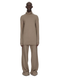 MONCLER + RICK OWENS FW24 SURF T IN DUST DOUBLE BRUSHED JERSEY THIS SURF T IS BELOW HIP LENGTH WITH LONG SLEEVES AND A LOOSE FIT. IT HAS A HIGH RIBBED TURTLE NECK AND CUFFS. IT FEATURES THE SIGNATURE LEVEL SHOULDER SEAMS AND SINGLE SEAM RUNNING DOWN THE CENTRE BACK SPINE. IT HAS THE MONCLER + RICK OWENS EMBROIDERED LOGO PATCH ON THE UPPER LEFT ARM THIS MEDIUMWEIGHT COTTON JERSEY HAS A SOFT AND WARM HAND FEEL WITH A BRUSHED SURFACE. THIS JERSEY IS MADE USING CERTIFIED ORGANIC COTTON. - COLOR: DUST - MATERIAL100% COTTON - MALE MODEL IS 189 CM TALL, FEMALE MODEL IS 181 CM TALL - MALE MODEL IS WEARING SIZE M, FEMALE MODEL IS WEARING SIZE XS